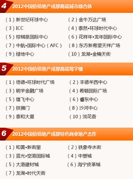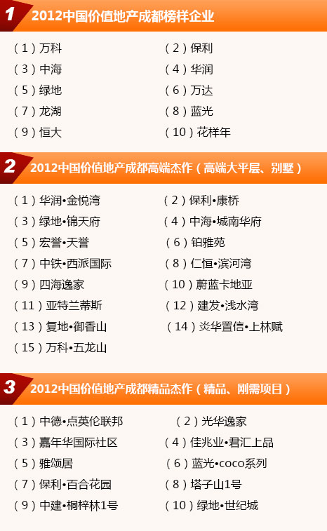 2011年12月,《成都商報(bào)》聯(lián)合《每日經(jīng)濟(jì)新聞》推出“2012中國(guó)價(jià)值地產(chǎn)成都榜”暨“2012中國(guó)價(jià)值地產(chǎn)成都年會(huì)”。