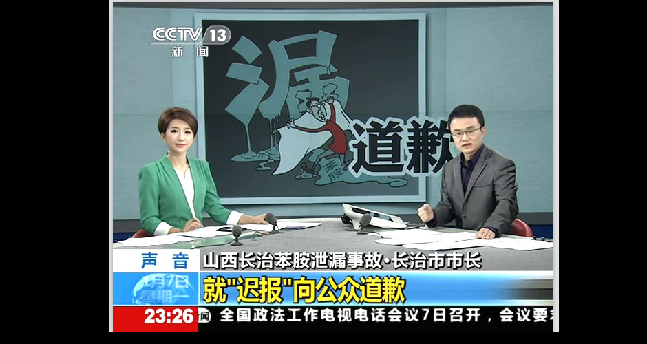 長治市張保表示,由于一些原因,造成沒有及時上報省政府,反映了對環(huán)保污染認識不夠、警惕性不高,對苯胺進入濁漳河以后污染危害性估計不足,對此表示深深歉意。